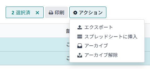 アクセス権がない場合、「エクスポート」は表示されません。