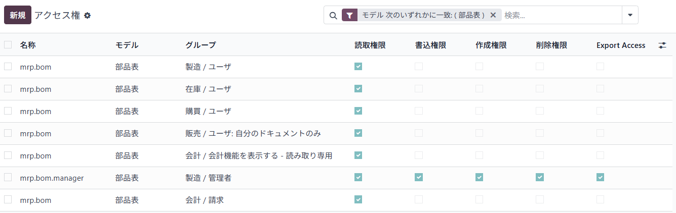 • エクスポートのアクセス権管理:アクセス権にエクスポート許可フラグを追加し、グループ・モデル単位でエクスポートの可否を制御できるようにします。